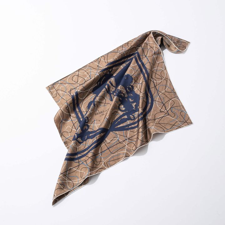 エルメスのカレ 90を象徴する定番の一枚。マロンカラーを基調に、繊細なラインと力強いタッチで描かれた馬具が優雅に浮かび上がります。まろやかで奥行きのある色調は、春の光を受けて軽やかな気品を演出。装いに洗練と品格をもたらす、永遠のアイテムです。