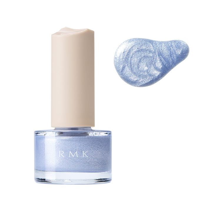 モダンなムードをもたらす「RMK」の新ネイルポリッシュには、ひんやり感のあるブルー「08 フロスティッド ラグーン」がお目見え。ブルー、シルバー、ピンクのパールが煌めく見た目にも涼しい水感カラーで、夏の指先に透明感を与えて。