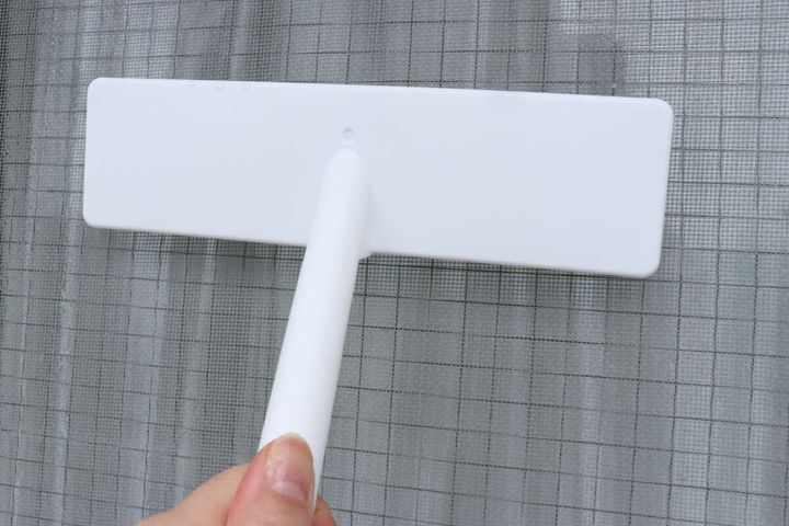 しっかりと握り込んで網戸掃除ができる、柄付きのブラシです。