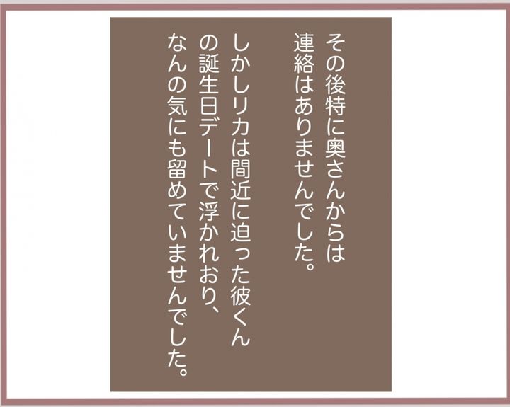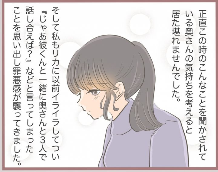 ゆいには一つ年下のフランス人形のように美形の妹リカがいて…。用心棒を連れて彼の家へと押しかけたリカ。奥さんと初対面し、「彼とお付き合いしています」と宣言。動揺した奥さんの顔を見て「勝ったな!」と思ったと言うが…。