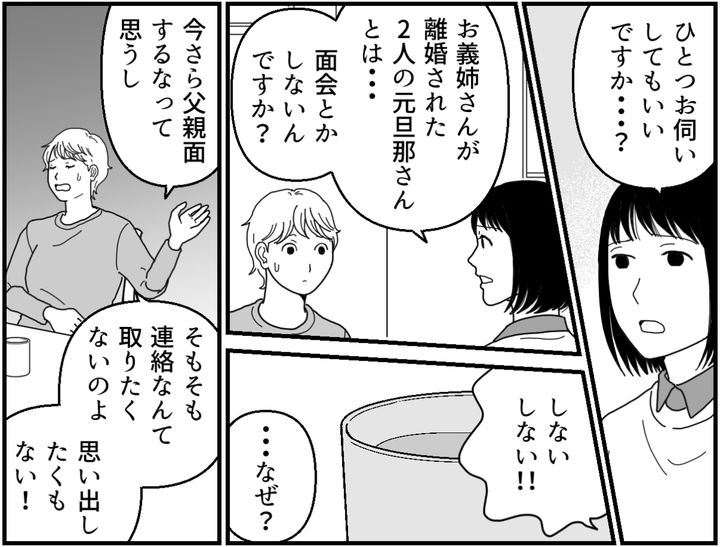 義姉自身は何の「我慢」もせず、弟家族に犠牲を強いてやりたい放題。なのになぜ私の「我慢」には無頓着でいられるんだろう。なぜ義実家も夫も全員、私の「我慢」の上に甥っ子たちの幸せを成立させようとするのだろう。私にはその神経が信じられなかったのでした。