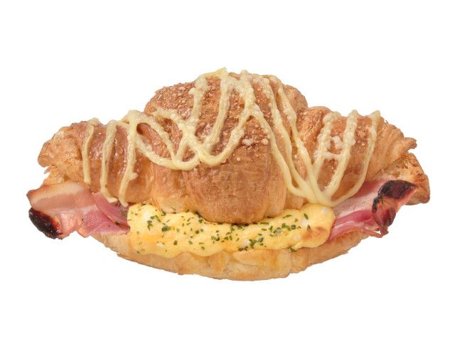 香ばしく焼き上げたクロワッサンにベーコンたまごフィリングを挟み、マヨネーズソースチーズをトッピングして焼き上げた食事として楽しめる惣菜系のクロワッサンです。 カロリー:406kcal 【販売地域】北海道、東北、関東、甲信越、北陸、東海、近畿、中国、四国、九州