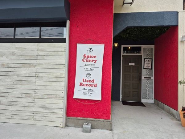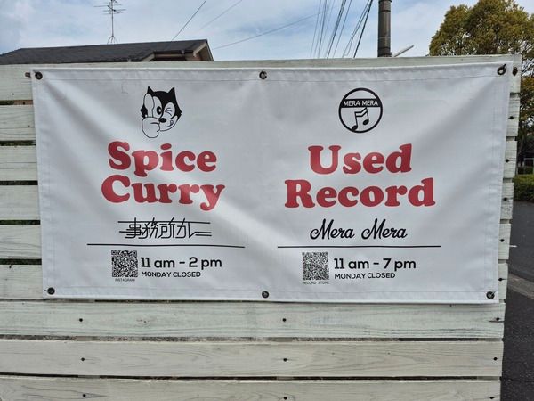 ここは、本格スパイスカレーが味わえるカフェ『事務所カレー』でもあり、中古レコードショップ『メラメラ』でもあります。カレーとレコードをこよなく愛する橋本さんご夫婦が、2023年5月にオープンした、お二人のロマンが詰まったお店です。ユニークな店名は、ご家族が以前営んでいた測量事務所の建物を、そのまま店舗にしたことに由来しています。