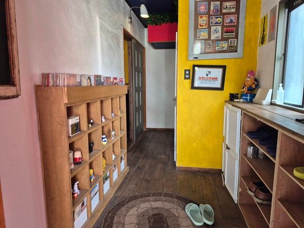 元民家を活かした造りなので、まるで誰かの家に遊びに来たかのような不思議なデジャヴュを覚える玄関です。スリッパに履き替えて、いざ入店。