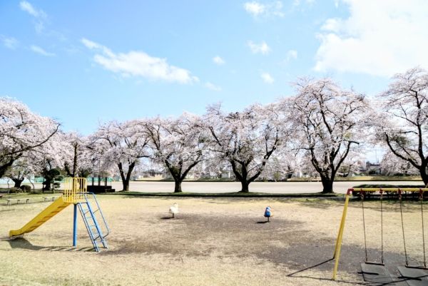 園内には、滑り台やブランコなどの遊具があります。子供達も遊びながらお花見出来ちゃうので、ママ達もゆっくり桜を満喫出来ます。