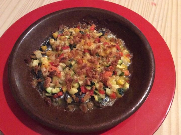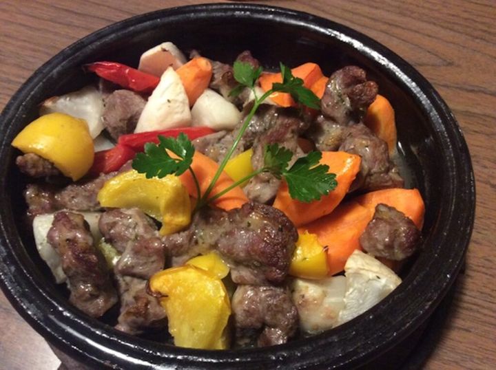 ハーブソルトをまぶしたラム肉と、西洋野菜のぬか漬けを使用したオーブン焼き。人参、パプリカ、ズッキーニ、カリフラワーなどのぬか漬けを使用。ぬか漬けの酸味がビネガーのような役割を果たし、味わい深い1品に仕上がります。回しかけたオリーブオイルとの相性も。こちらも切って焼くだけの簡単料理です。