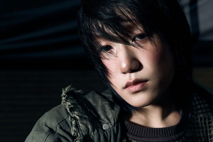 肩まで伸びるロングの黒髪をセンターパートで分け、目元は深みのある囲みアイラインで強調。どこか危うさを感じさせる、ミステリアスで魅惑的なムードに仕上げて。
