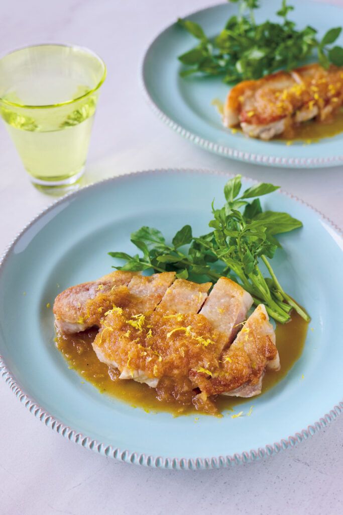 焼いた豚肉にソースをかけるだけなのに、ごちそう感たっぷりの一皿。お肉1枚、ペロリと食べられます。