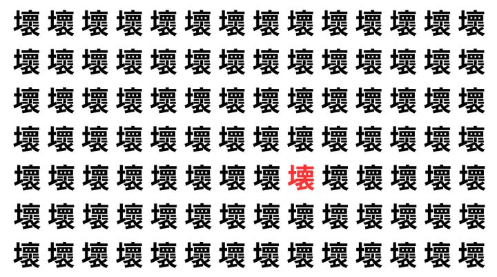 たくさんの「壞」の中に、よく似た別の漢字が1文字だけ隠れています。