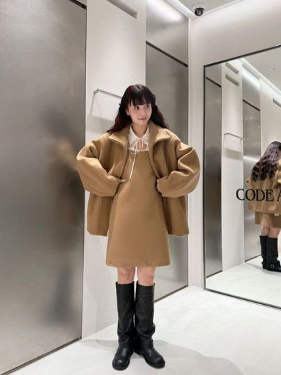 ミニ丈のボトムスを組み合わせるさいは、ロングブーツなどで素肌の見える面積を小さくすることが大切です。