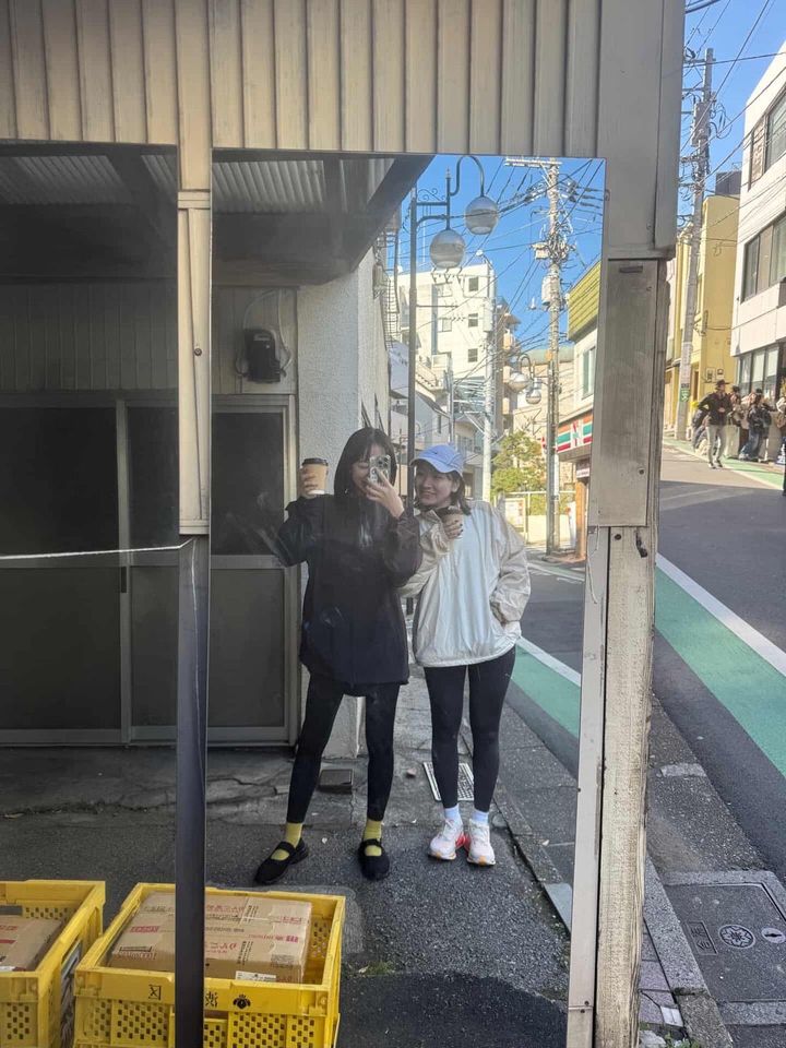 友人と走った後、コーヒー片手におしゃべりを楽しむエディターAKI。 Hearst Owned