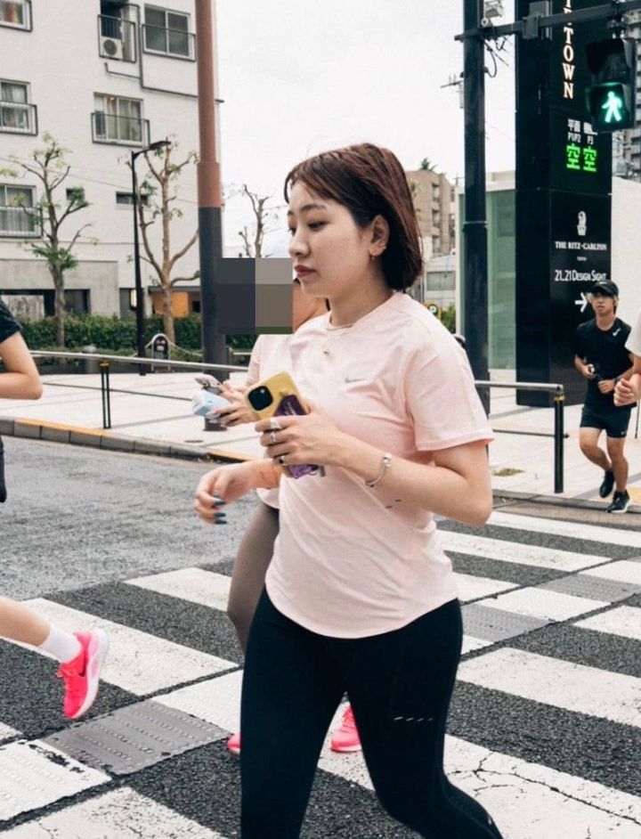 ランニング中のICHIEさん。帽子は「オークリー」、Tシャツはコミュニティのもの。 Hearst Owned