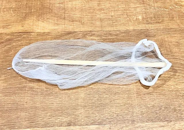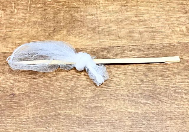 最初に、割り箸の先端を水切りネットで覆ってください。