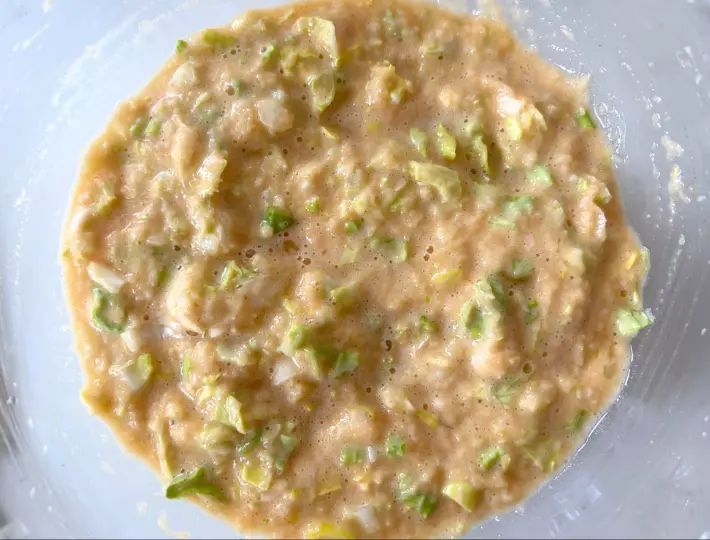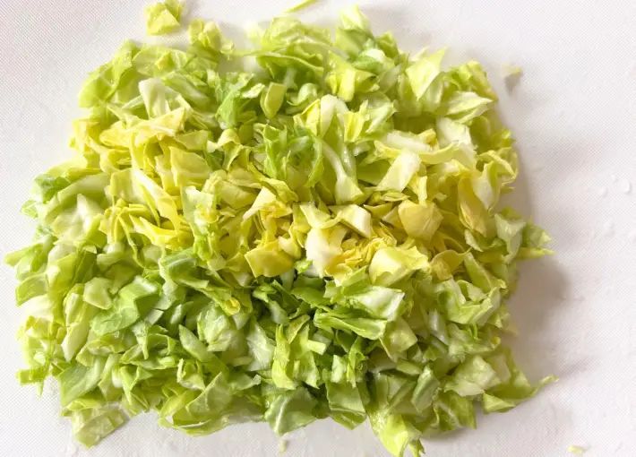 キャベツと長ネギは、粗めのみじん切りにしましょう。
