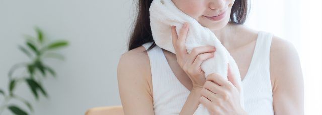 拭くのではなく、やさしく押さえるだけ。 それだけで肌への刺激が減り、お肌のトラブル予防につながります。