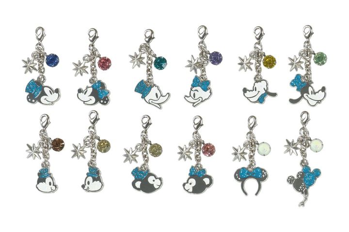 キャラクターの横顔やカチューシャ、バルーンがデザインされた「チャーム」各700円は12種類。