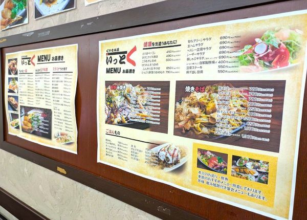 夜は、鉄板焼きのメニューや海鮮メニューがおいしそうないっとくさん。