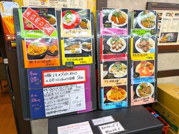 ランチは定番定食メニュー(写真のメニュー)12種類に、本日の日替わりランチが1種類と本日の定番ランチが7種類があります。本日の定番ランチは(焼き魚定食が多め)種類が多いですね~。すごいですね。これはかなり種類豊富なランチだぁ~。