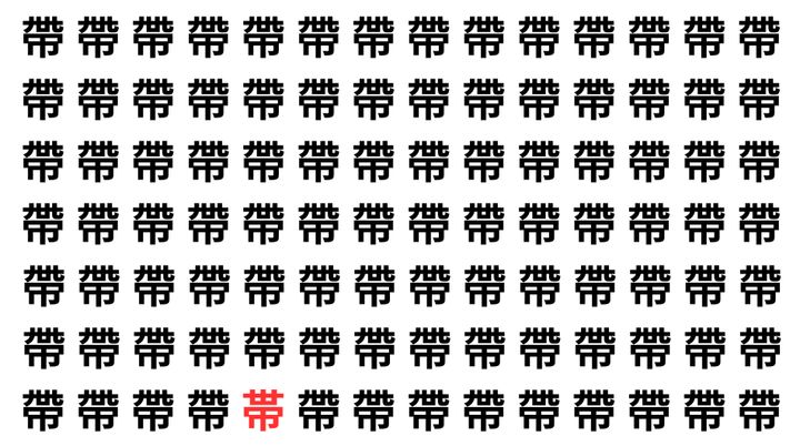 たくさんの「帶」の中に、よく似た別の漢字が1文字だけ隠れています。