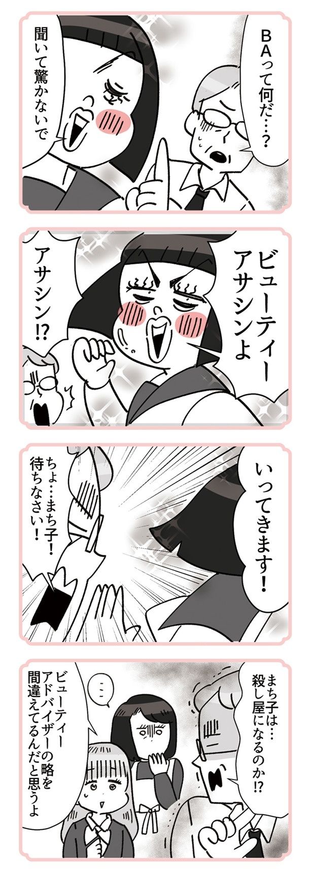 百貨店のコスメ売り場でビューティーアドバイザー(BA)として働く桜城まち子。常にトップの売上を誇る彼女についた異名は「カウンターのお嬢」。誰もがカリスマBAとして崇めている――と思っているのは本人だけで、周囲からは「押し売りのお嬢」と言われていた!? 売り場の同僚は助け合う仲間ではなく、売上を競う敵でしかない! 売り上げのためならなんだってする、憎めない悪女のデパコス職場コメディ『デパコスカウンターは今日も修羅場です ~BA下剋上物語~』。デパートで美しく微笑むBAたちの修羅場をお楽しみください。