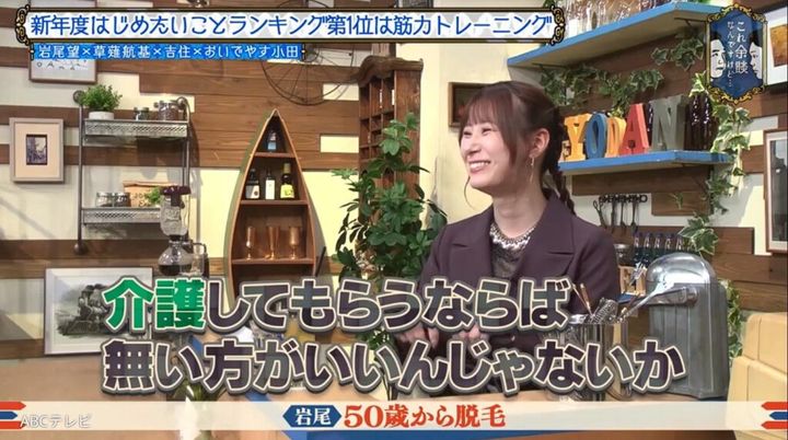 脱毛について岩尾は、「誰のためにキレイになっているかというより、面倒見てもらうことを想像してやりだしている」とのこと。脱毛にまさかの理由があったことに山内は、「もう介護のことも考えてはるんですね」「岩尾さんは終活に入られた」とツッコみ、スタジオ一同と苦笑いした。