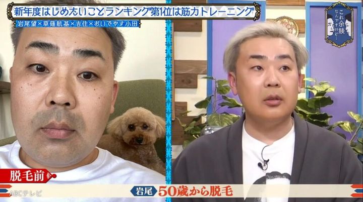 上半身がキレイになると岩尾は、「下(に毛が)あんのなんかバランス悪いな」と気になりだしたのだとか。「例えば介護とかしてもらうならば、(毛は)ない方がいいんじゃないか」ということで、下半身の脱毛も始めようとしている。