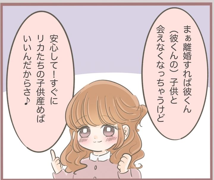ゆいには一つ年下のフランス人形のように美形の妹リカがいて…。彼の奥さんに「ここではなんだから…」と家に上げてもらったリカは、彼とのなれそめを語り、彼につけられたキスマークを見せると、「彼を解放してあげて!」と迫った。