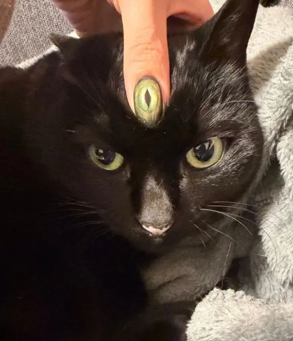 リアルなキャットアイのネイルは、飼い主さんの友人が施術してくれたのだとか。