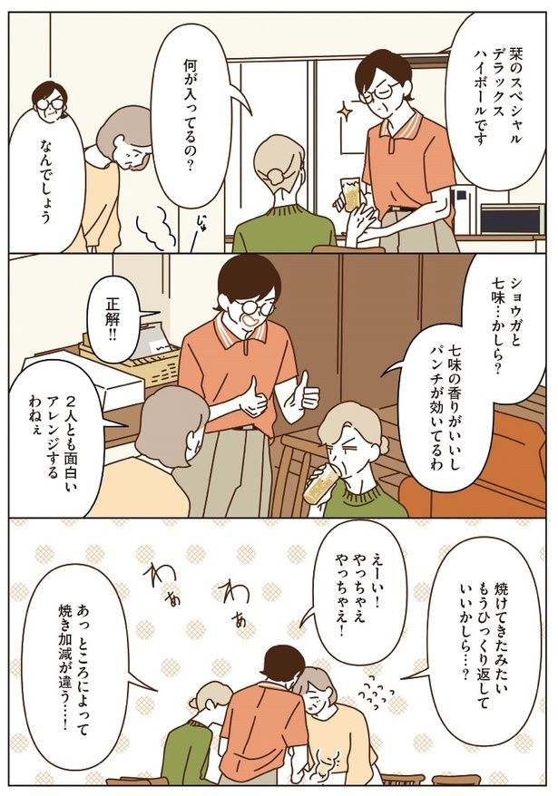 3. マダム3人でたこ焼きパーティー。ハーブのお酒を作る“おうちバー”も開店/マダムたちのルームシェア4㊲