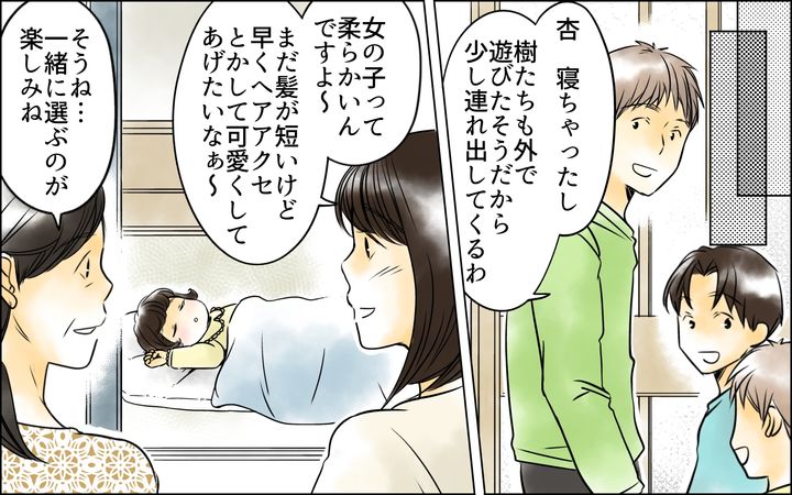 夫、俊が私より朋夏さんを大切にすることに対してずっと不快だった私。だから真衣ちゃんだけが私にとって救いだったのです。それなのに、今まで朋夏さんに対して特に興味を示してこなかった真衣ちゃんまでが朋夏さんを褒めたことに私はとても嫌な気分になりました。そんな時に真衣ちゃんから受験の話が飛び出して…。真衣ちゃんの一番の理解者という立場を守りたかった私は、良かれと思って提案をしたのですが…。