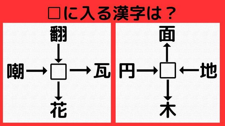 2. 【漢字パズル】翻□、□瓦、□花、嘲□ □に入る漢字は何…?