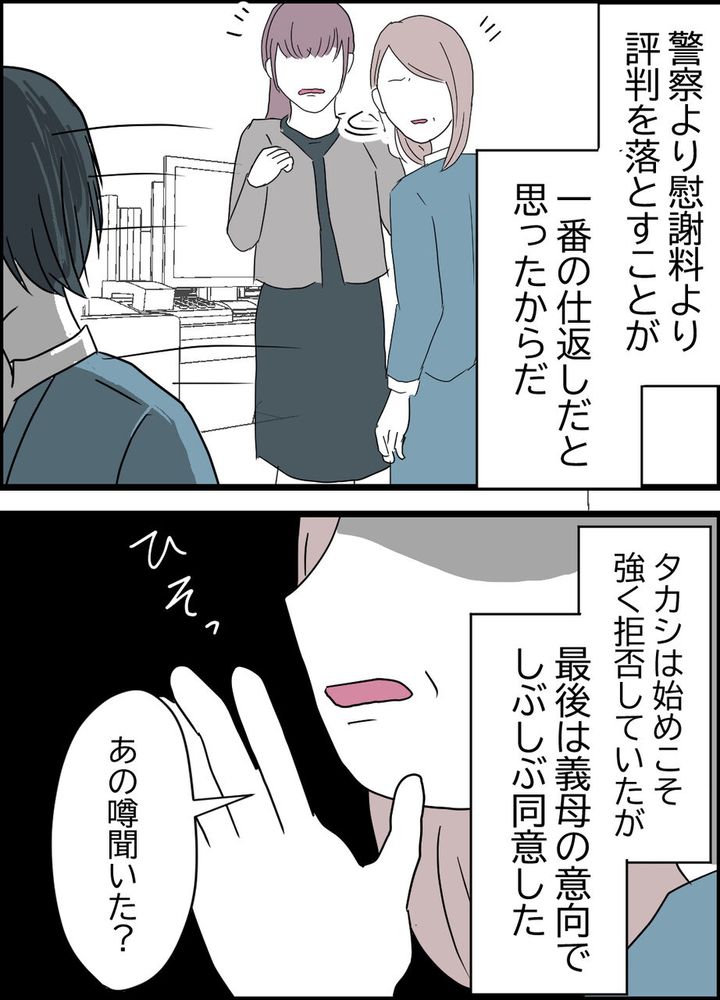 妻に暴力を振るった息子をかばう義母に、親子そろって保身ばかり、とうんざりするさとこ。「警察だけは勘弁して」という義母に対して、さとこは「条件が2つある」と切り出して…。