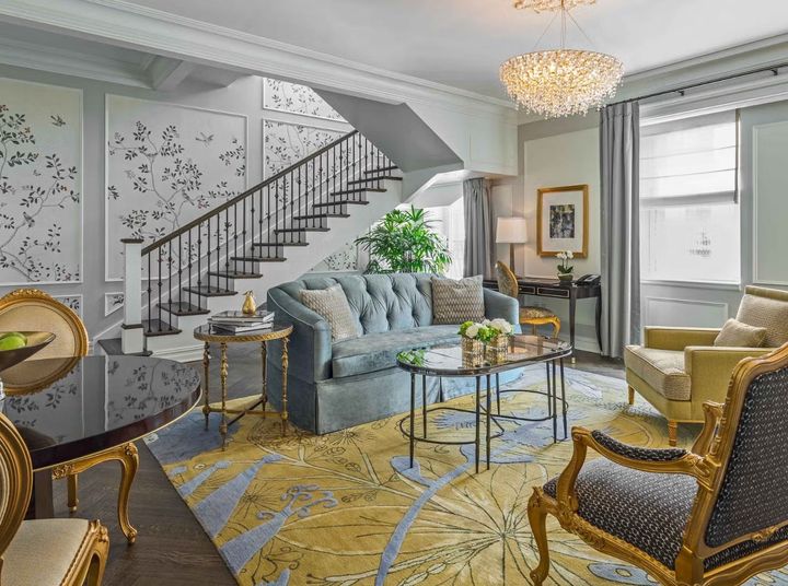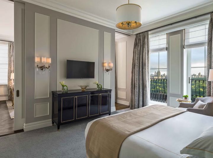 こちらの写真は、ザ・プラザ・ニューヨークの客室。このように、モールディングの内側を塗ると、通常とは異なる2色づかいを試すことができる。