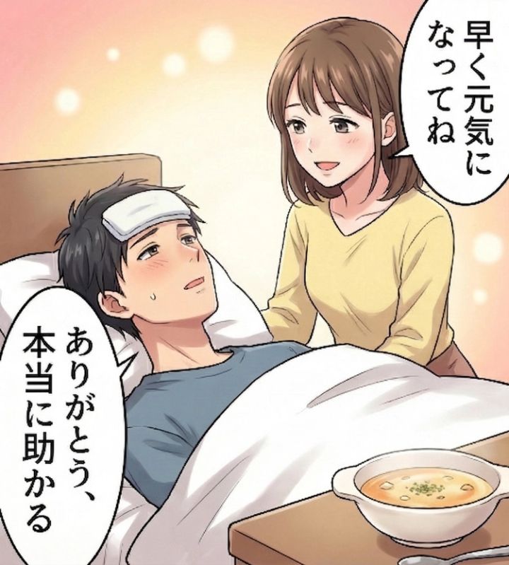 ある日、彼が突然高熱を出して寝込んでしまいました。心配になった私は、彼のアパートに通って看病することに。食事を作ったり、薬を買ってきたりと、早く元気になってほしい一心で動いていました。