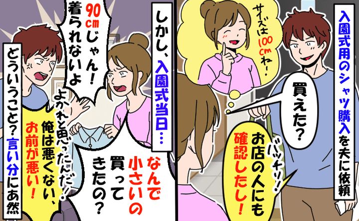 3. 娘にわざと小さい服を買ってきた夫「着られないじゃん!」入園式当日に大慌て…サイズを無視した理由は