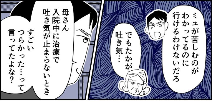 義母はなおも病気を盾に食い下がりましたが、ノボルは「ミユの体調が悪くなるとわかっていて連れて行くのは親失格だ」と一蹴。