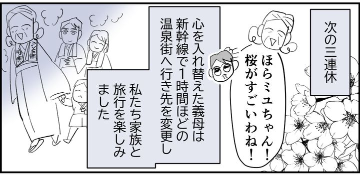 ノボルが義母を呼び出し、ミユに苦痛を強いる旅行には行かないとはっきり告げてくれました。