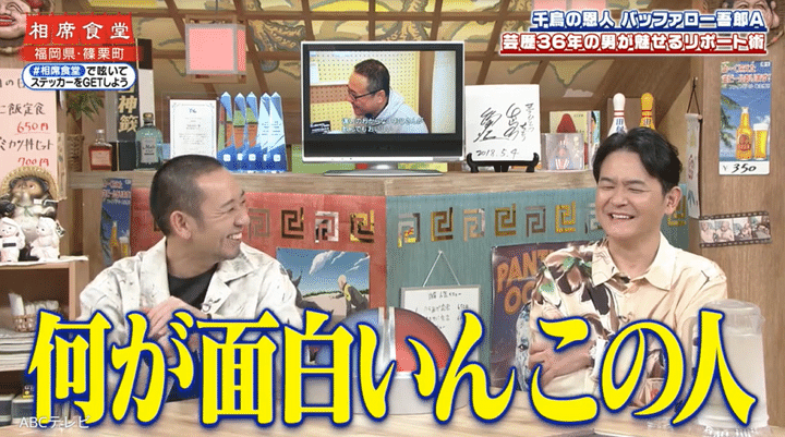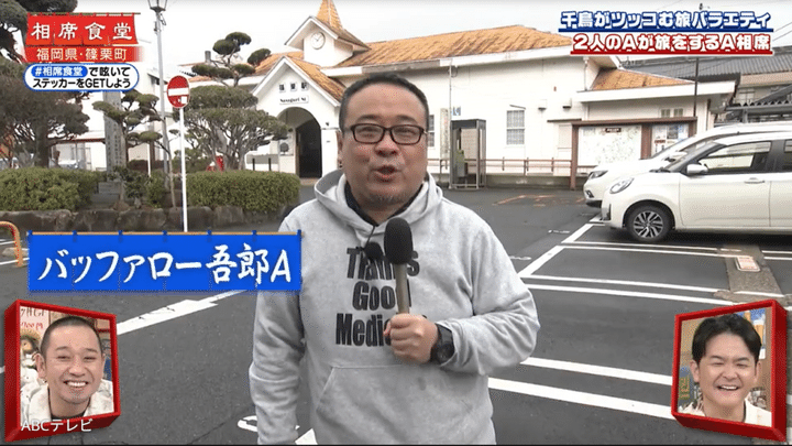 なお、Aの篠栗町ロケVTRは、『相席食堂』3月31日放送回で公開された。千鳥は最初こそAを、「実は一番面白い人」「天才」と称賛していたが、ダジャレを連発するロケを見ると一変。「めちゃくちゃ現場行ってツッコミたくなってきたわ!」「何が面白いんこの人!?」「もうええねんそれ!」などと、画面越しにAへ容赦なくツッコんだ。