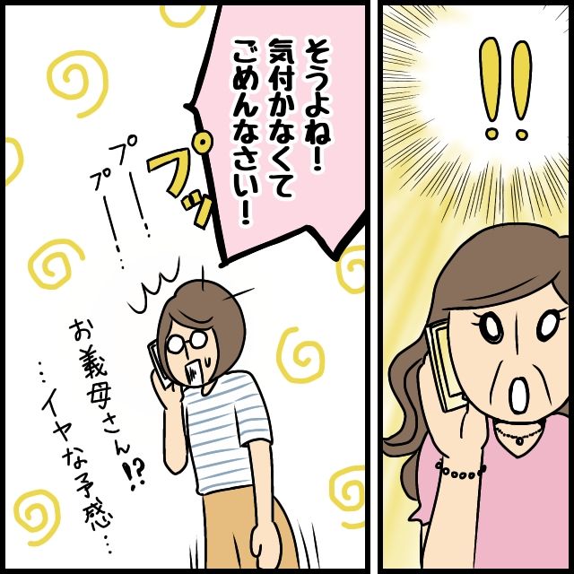すると、義母は少しの沈黙の後「そうよね!気付かなくてごめんなさい!」と慌てた様子で電話を切ってしまいました。突然切れた電話に「お義母さん!?」と呼びかけながら、私はイヤな予感がしていました・・。