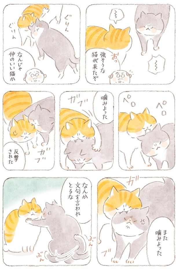 3. ご機嫌な猫のもとへ強そうな猫がやってきて…? じいちゃんが猫のじゃれあいを目撃/ねことじいちゃん11(49)