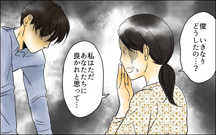 長男の俊は子どもが好きなのに、朋夏さんの身勝手さで子どもを諦めた経緯があります。子どもがいないことで親を心配させたのだし、真衣ちゃんの子どもに長男夫婦が協力するのはとても良いことだと思ったのですが…。