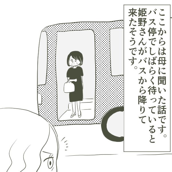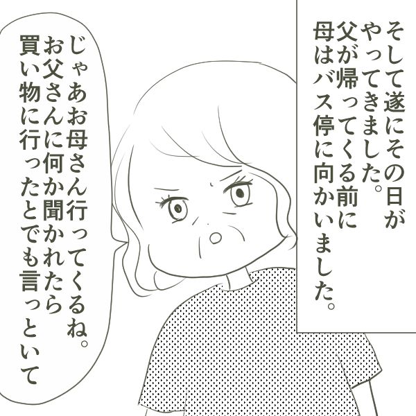 父を観察すると、行動パターンがだいたい決まっていることに気付きました。さらには姫野さんのバスの時間も特定できたのです。そして母がついに行動に出ることに…! 姫野さんに直接話をすると言い出し驚きました。母なりにいろいろ考えがあってのことだと思ったので、くれぐれも身の安全を優先にしてほしいと言いました。