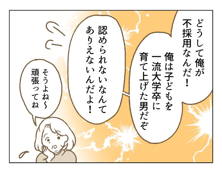 んーー……どこから突っ込んでいいのやら……。ヒデキさんは再就職がうまくいかないようですね。「そりゃそうだろ」という読者の方たちからの声が聞こえてきそうですが、「社会を変えたい!」と豪語するヒデキさん。まず変えるべきは「社会」ではなくて「自分自身」ではないでしょうか。しかも人生の手柄としてアカリさんの大学進学を掲げています。えっと……それ以外に自慢できること、ないんですか???