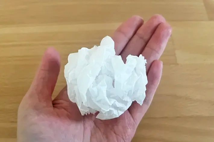 まずはクッキングシートを軽くクシャクシャと丸めてください。