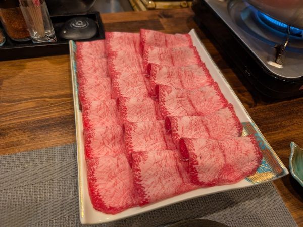 電話予約した時に注文していた「牛タンしゃぶしゃぶ」の鍋のセットが。 すぐに食べられる用意がされているのがありがたい。