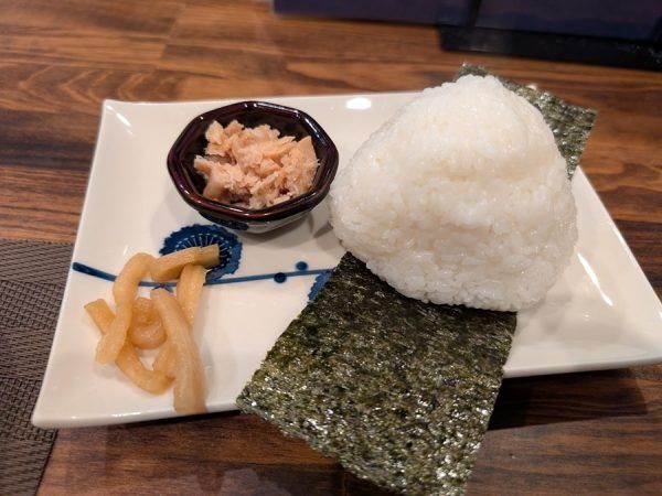 そして最後は〆。 シャケ、梅、明太子から具材が選べる「おにぎり」はシャケをチョイス。 自分で具材をのせて食べるスタイルの大きなおにぎりでお腹大満足。 今度は個室でゆったりの食事もいいな~。