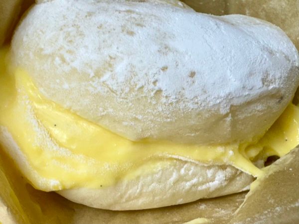 このお店に来たら、まずはこれ。注文を受けてから、真っ白でふわふわな白パンに、柔らかな特製生カスタードをたっぷり注入してくれます。