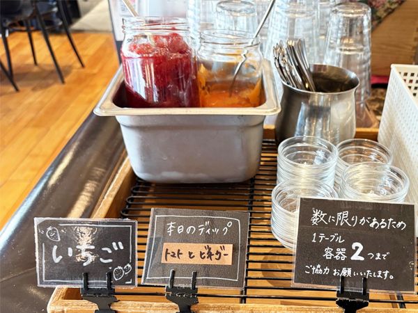いちごジャムと本日のディップもあるので、味変も楽しめそうです。