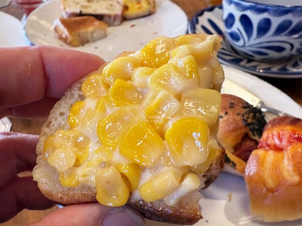 厚めにカットされたコーンマヨはコーンの粒々食感とマヨネーズがいいバランス。しっとりとしたパンの食感にも合っていました。