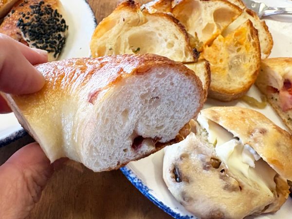 クランベリーベーグルは、モチッとした食感。クルミパンについていたクリームチーズをちょっとつけて食べるのも、楽しかったです。